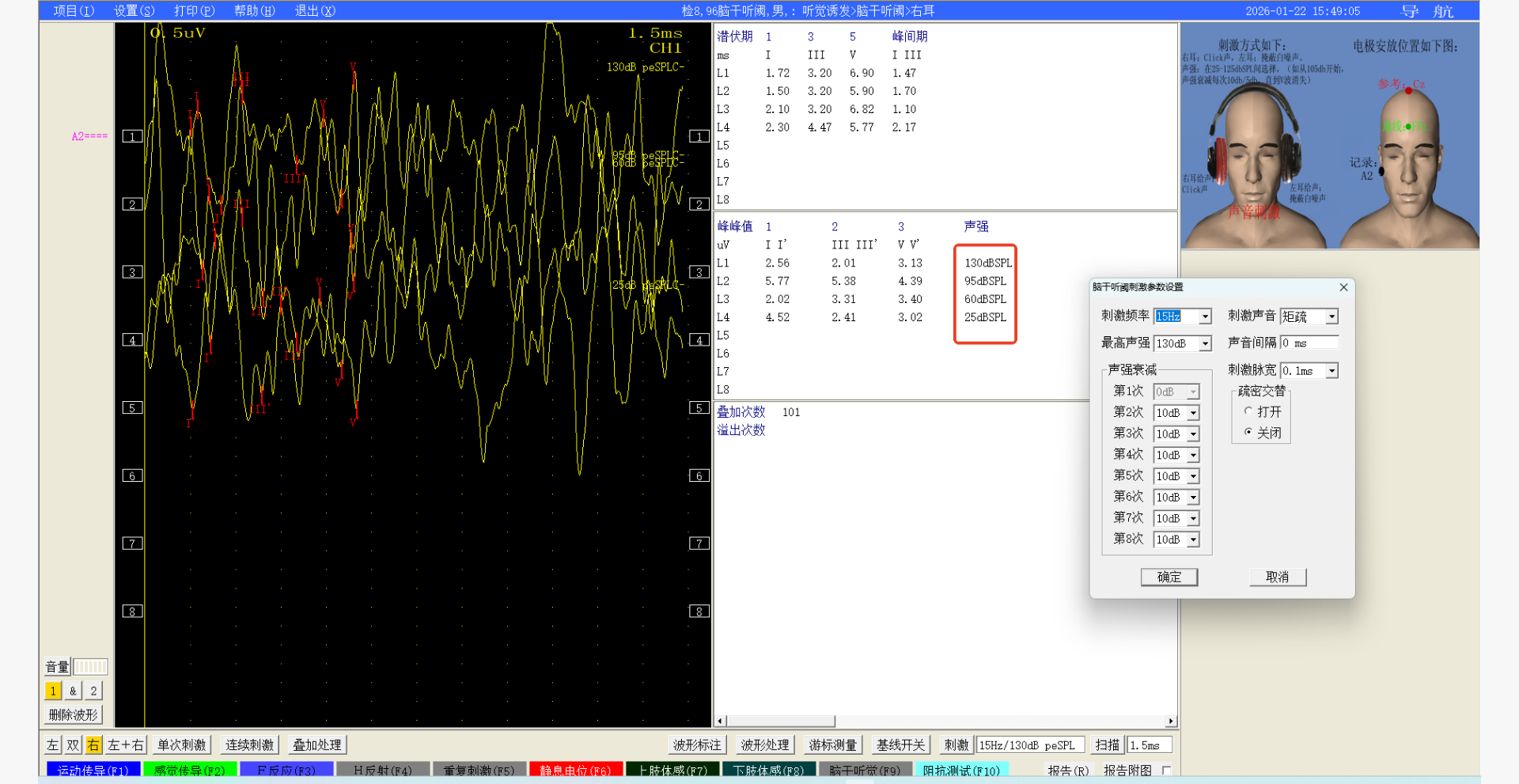 刺激参数设置的10db衰减,扫描时以35db每次衰减